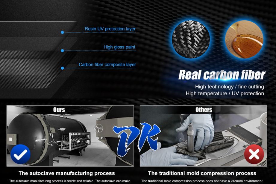 Trockene Kohlenstoff produkte werden von CNC geschnitzt, der gesamte 3k 240g Kohlefaser-Tuch-Produktions prozess ist komplexer und die Details sind empfindlicher.