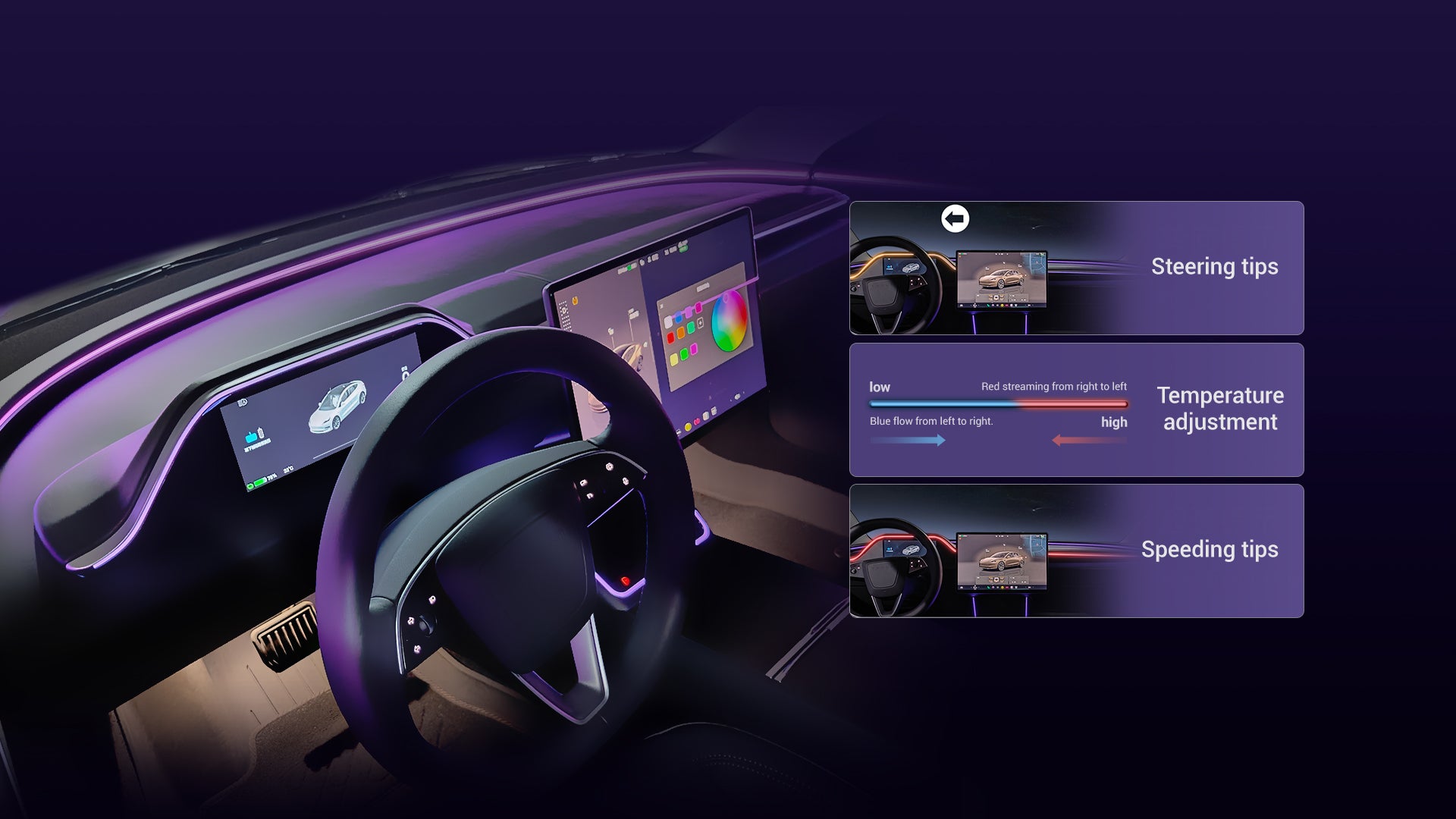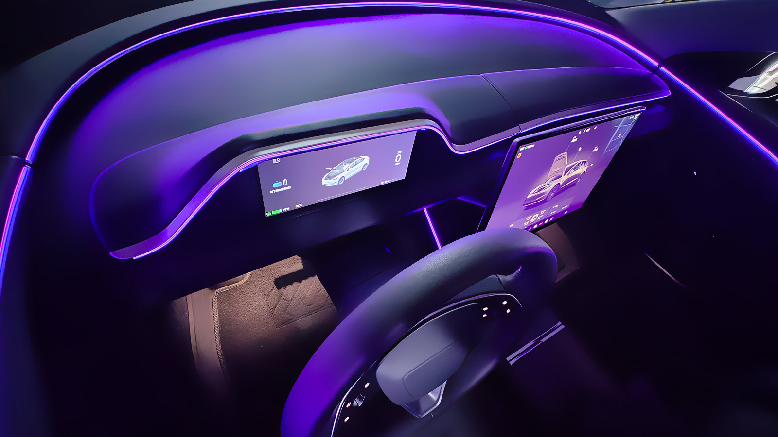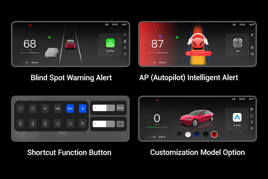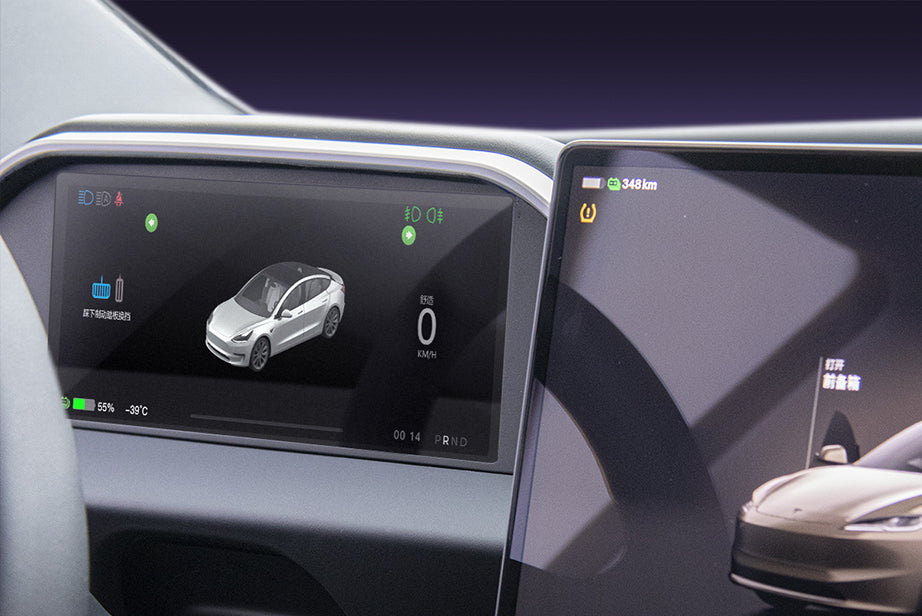 Sind Sie es leid, ständig den Kopf zu drehen, um wichtige Fahrinformationen auf dem zentralen Touchscreen Ihres Tesla zu sehen? Mit diesem integrierten Armaturenbrett-Display können Sie jetzt Apple CarPlay und Android Auto in Ihrem Tesla nutzen! Behalten Sie die originalen Doppelluftkanäle bei und genießen Sie einen sanften Luftstrom. Personalisieren Sie Ihr Fahrerlebnis mit mehrfarbiger LED-Ambientebeleuchtung, die die Innenraumästhetik verbessert und für ein angenehmes Fahrerlebnis sorgt.