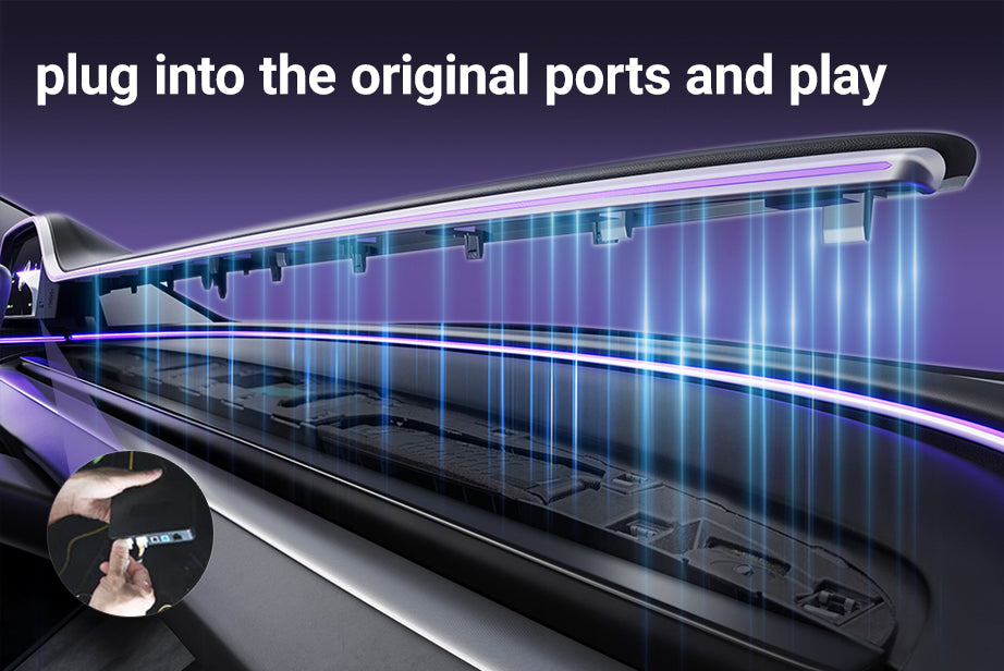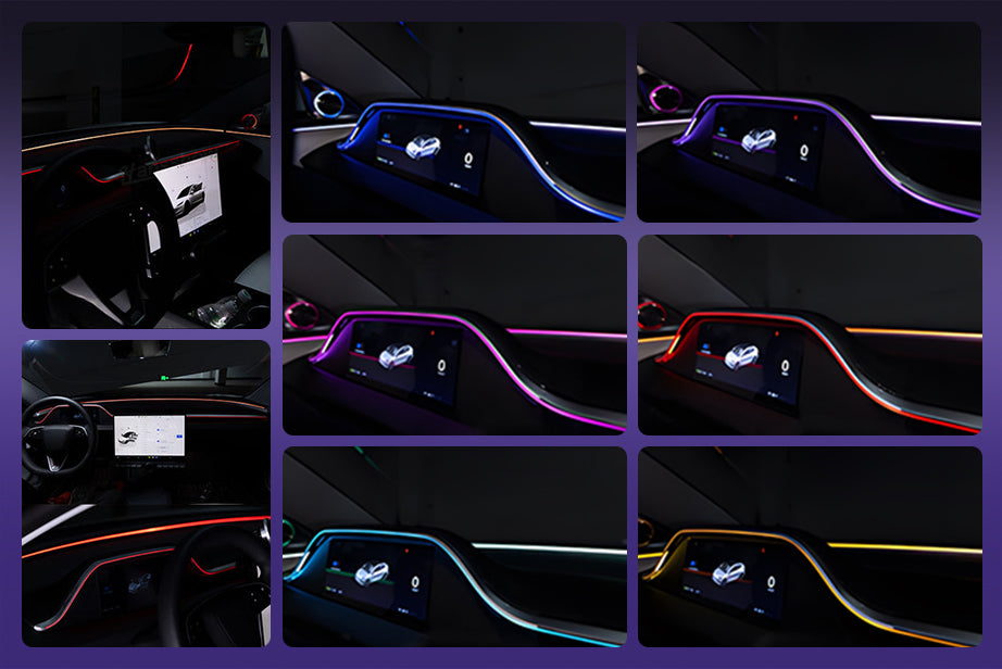 - Innenraumaufwertung: Durch die Verwendung lasergeätzter Ambientebeleuchtung, die das Licht gleichmäßig lenkt und ein weiches, blendfreies Licht erzeugt, das mit dem Originalfahrzeug synchronisiert und gesteuert wird.