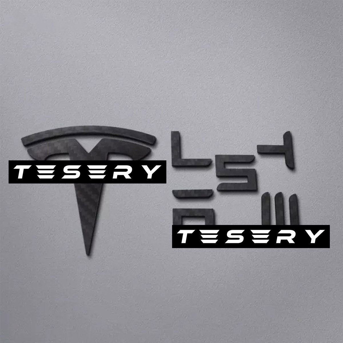 TESERY Logo-Abdeckung, vorderes Abzeichen, hintere Buchstaben, Emblem für Tesla Model 3 Highland/Y – Außenseite aus echtem Carbon