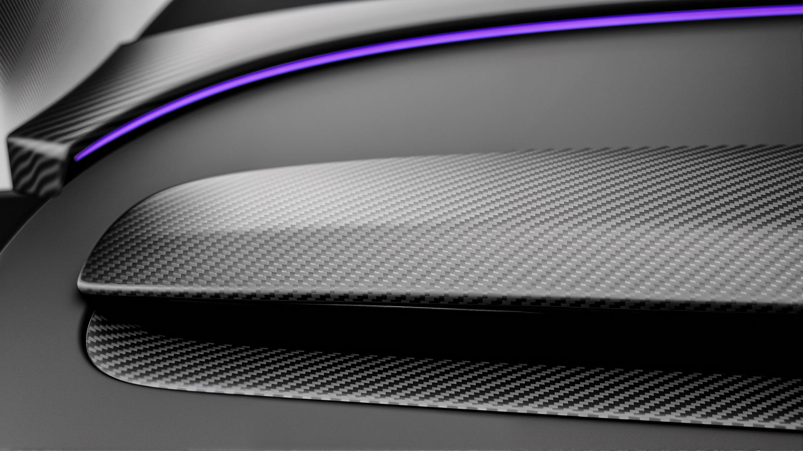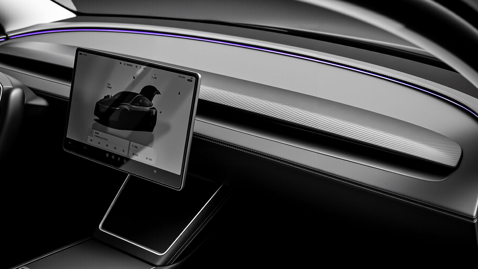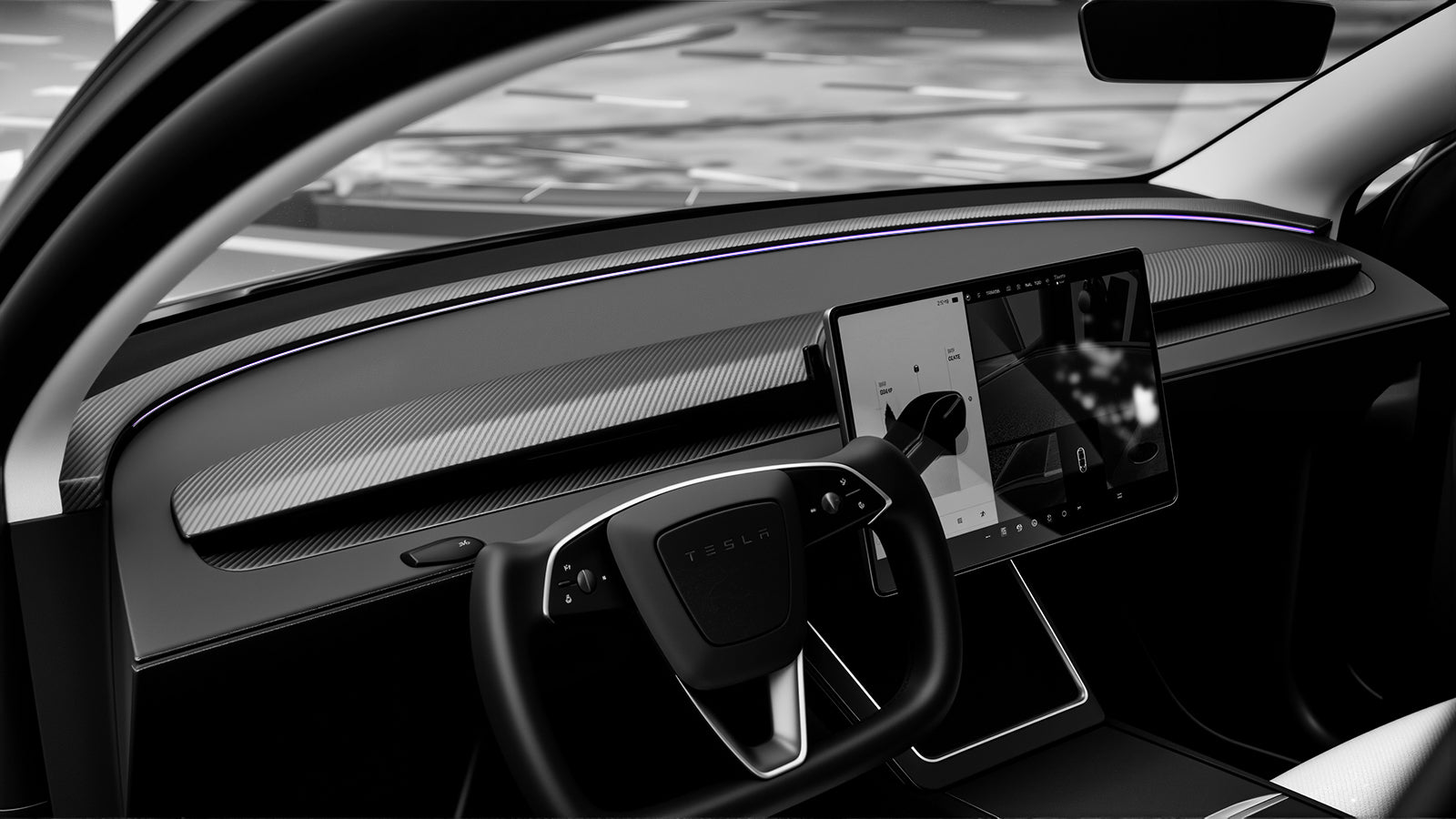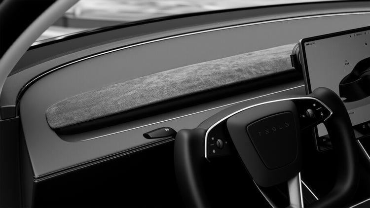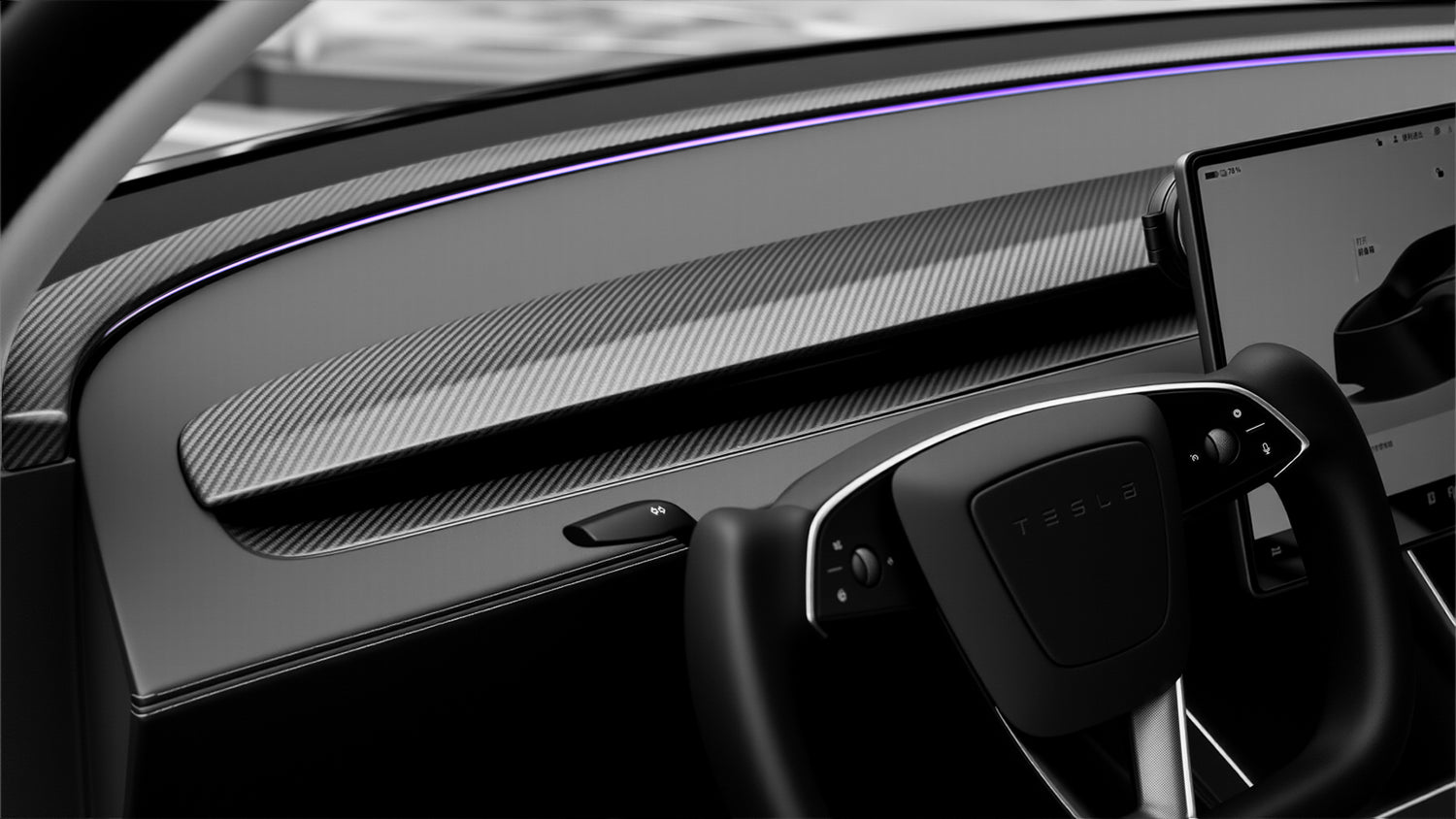 Unsere Armaturenbrettabdeckung besteht aus trockener Carbonfaser, dem gleichen leichten, ultrastarken Material, das auch im Rennsport und in der Luft- und Raumfahrt verwendet wird. Im Gegensatz zu herkömmlichem Nasscarbon ist trockenes Carbon leichter, dünner und weist ein tieferes, reicheres Webmuster auf. Das Ergebnis? Eine raffinierte, leistungsstarke Ästhetik, die direkt aus dem Designstudio von Tesla zu stammen scheint.