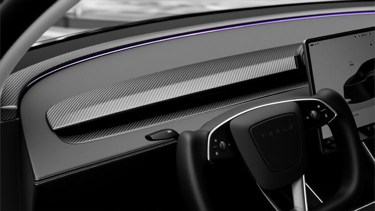 Rüsten Sie Ihren Tesla auf: Model 3 Highland / Model Y Juniper Dry Carbon Fiber Armaturenbrettabdeckung