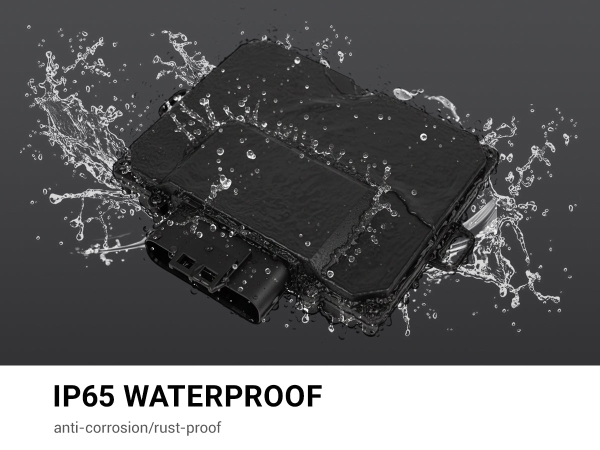 Entwickelt für den Einsatz unter realen Bedingungen. Hauptsteuerkasten und Anschlüsse sind nach IP65 zertifiziert und gewährleisten so vollständigen Schutz vor Autowaschanlagen, starkem Regen und Feuchtigkeit im Motorraum.