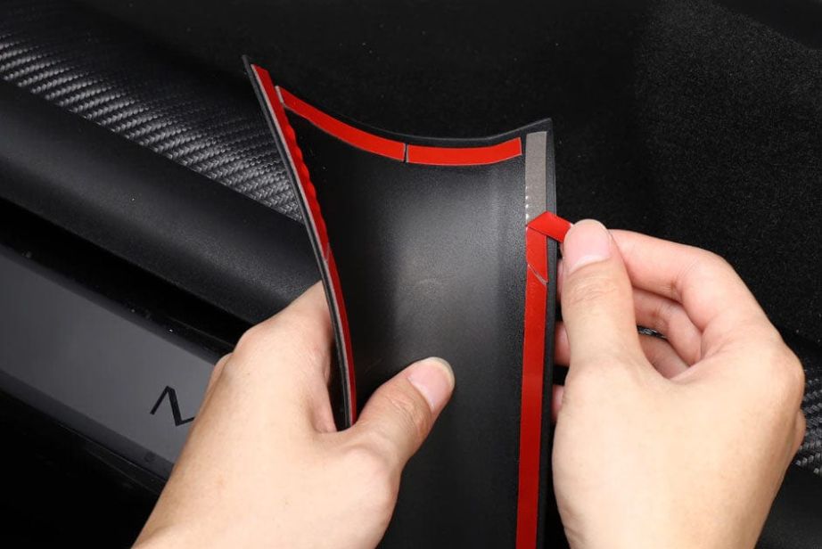 A1-Verwendung von doppelseitigem Klebeband; Einmal auf einem Tesla installiert, hält das Gummi futter es an Ort und Stelle. Dies war sowohl vorne als auch hinten der Fall.