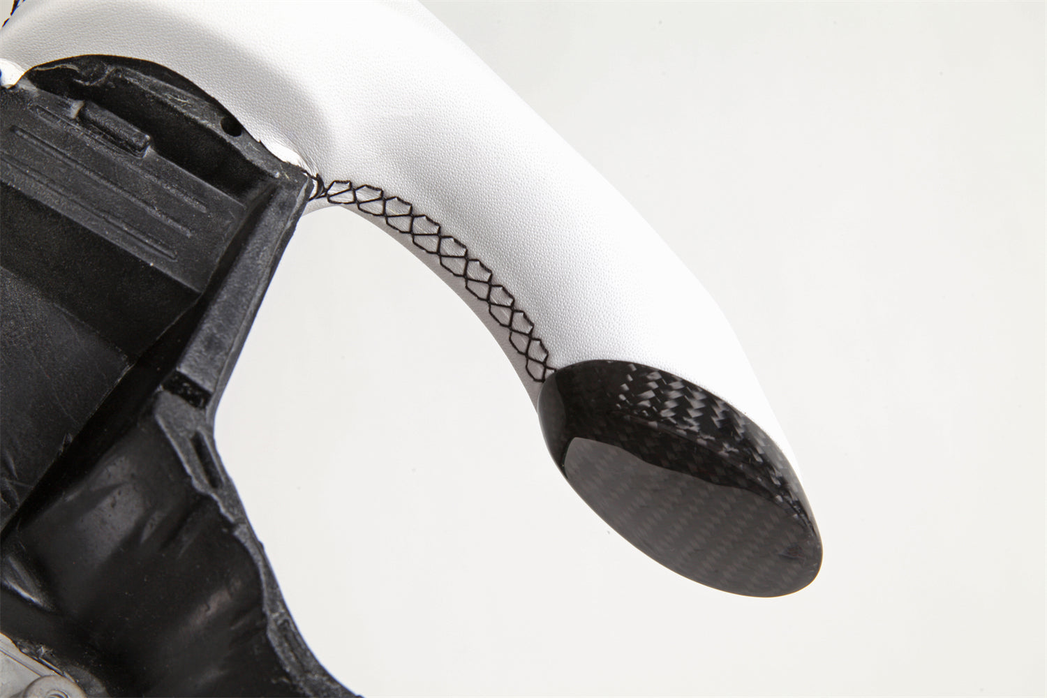 Präzise handgenäht, sorgt jedes Detail für Komfort und Stil. Hochwertiges Ultraleder und Carbonfaser bieten ein luxuriöses Gefühl, Haltbarkeit und einen angenehmen Griff und stellen damit eine Verbesserung gegenüber einem Standard-OEM-Teil dar.