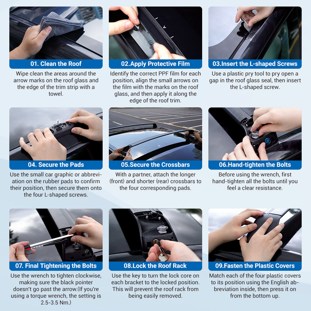 Installation und Überprüfung des Tesla-Dachgepäckträgers