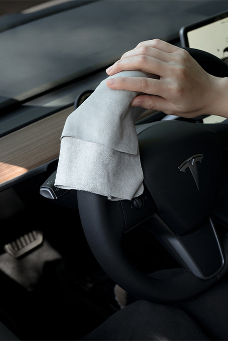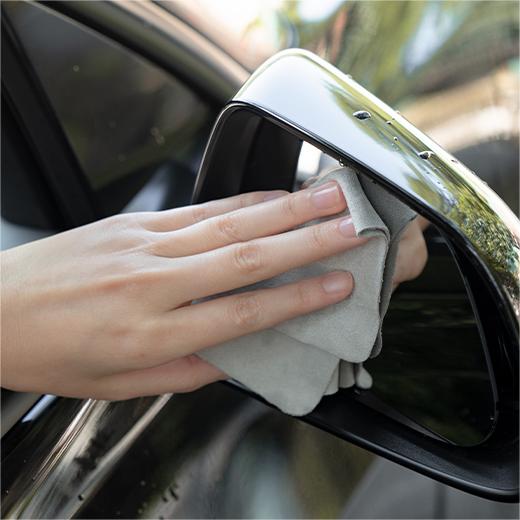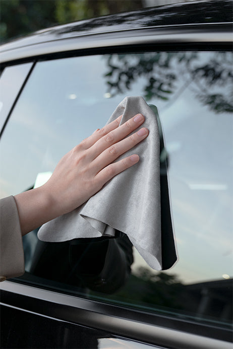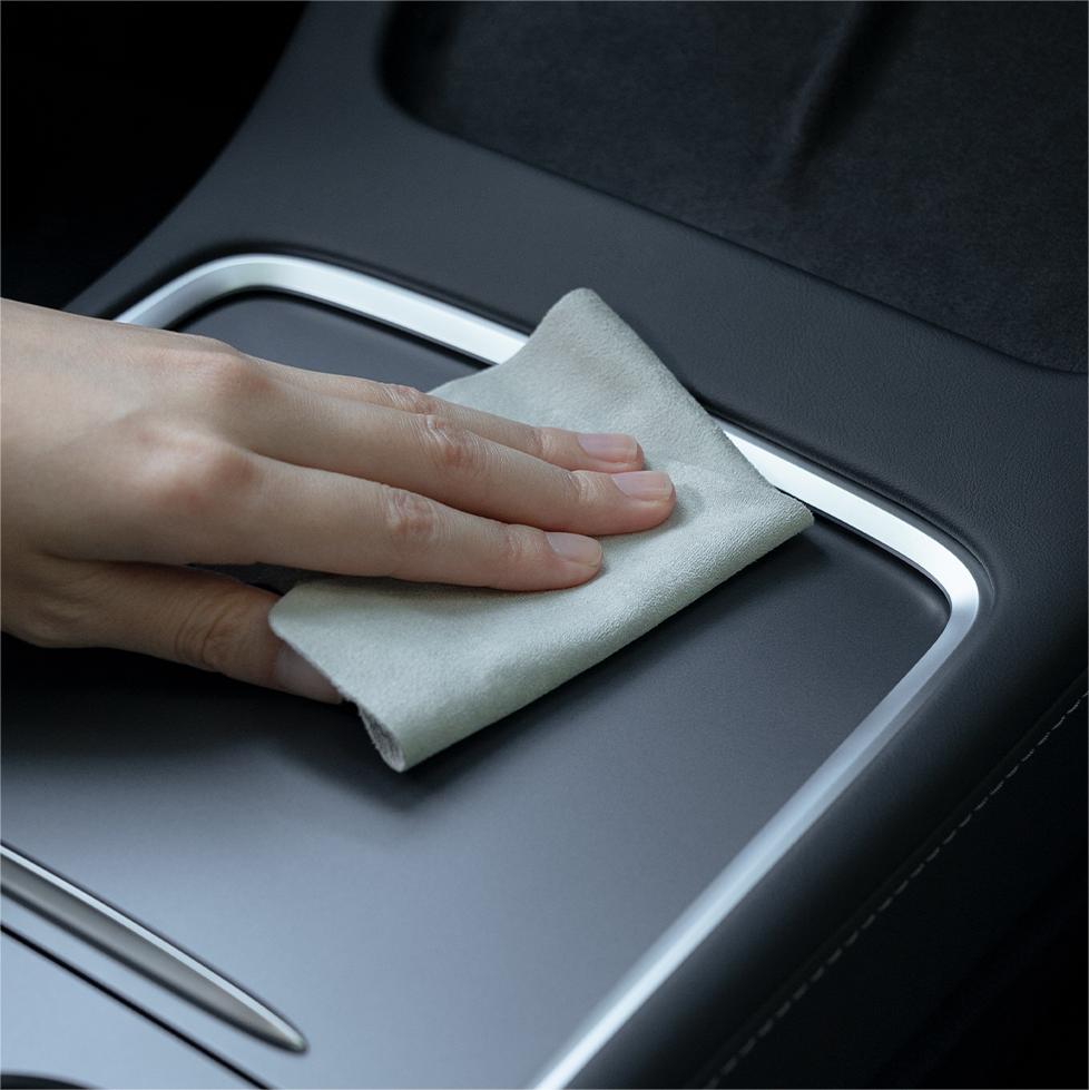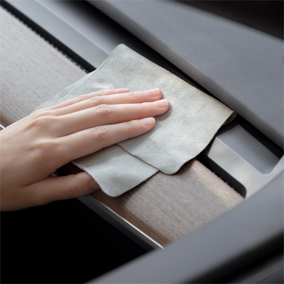 Wenn Sie dieses weiche und zarte Tuch in der Hand halten und über Karosserie, Fenster, Bildschirme, Innenverkleidungen und Sitze gleiten lassen, hinterlässt es ein makelloses Ergebnis. Die beiden Seiten mit kurzen und langen Fasern sorgen für ein kratzfreies Reinigungserlebnis.